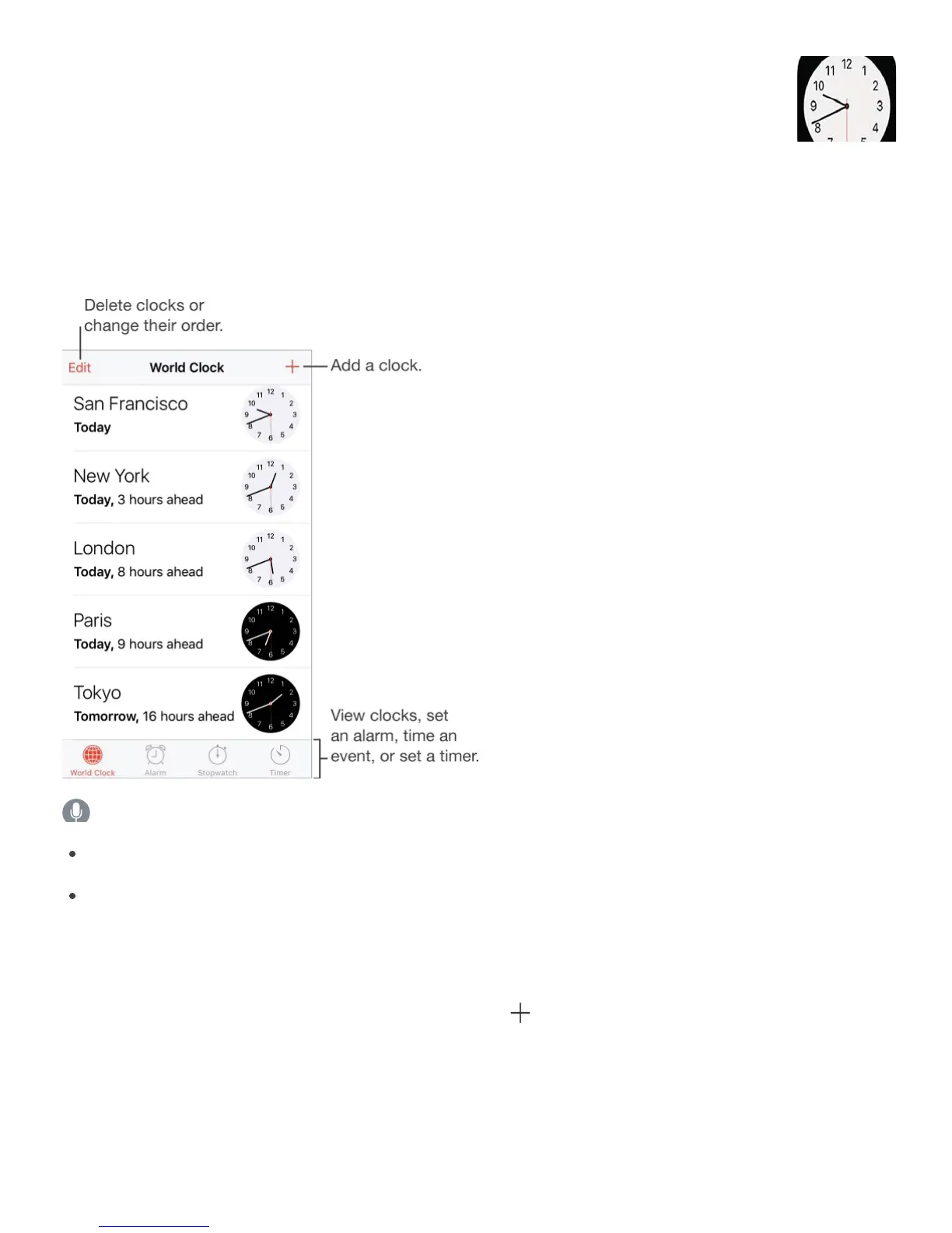 The first clock displays the time based on your location when you set up iPhone. Add other