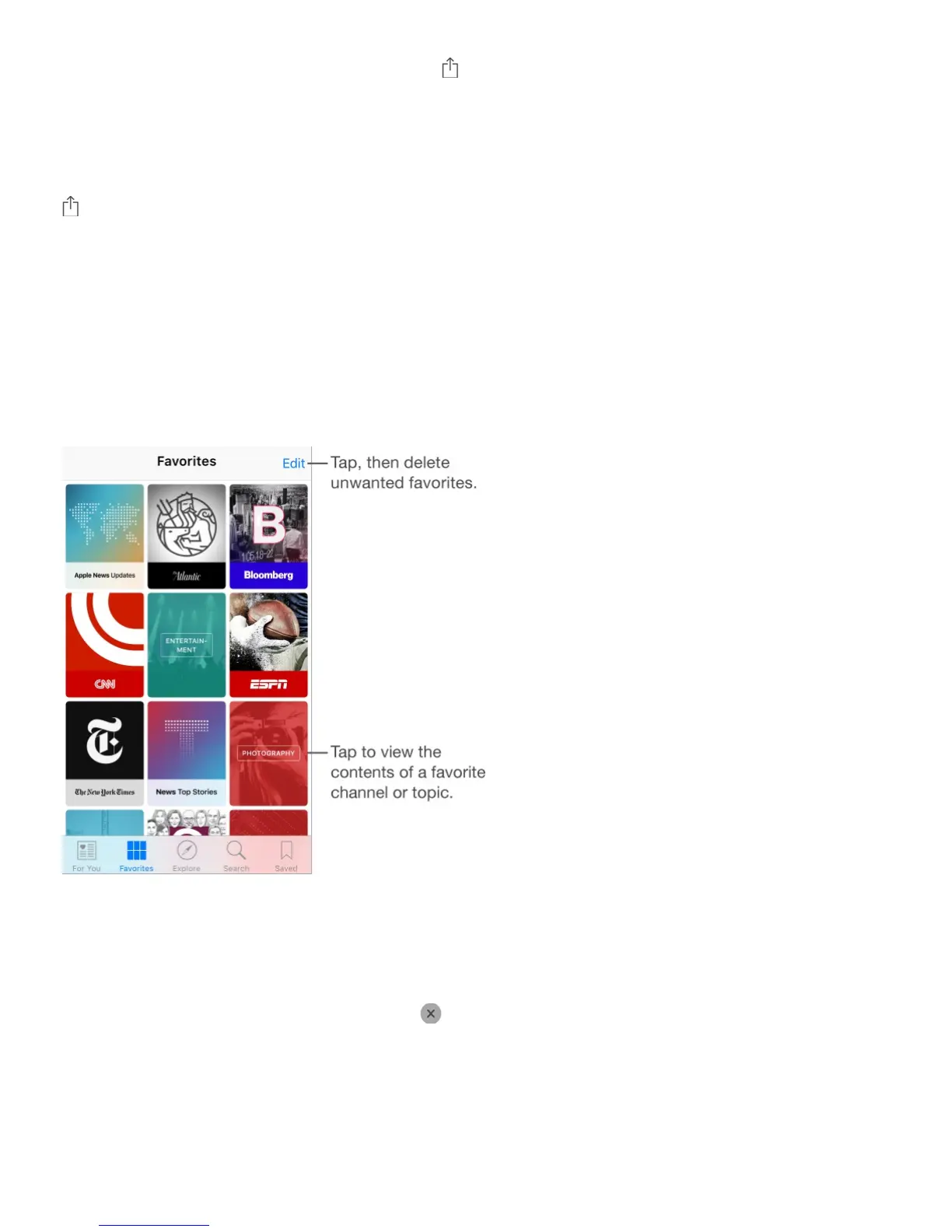 The channels and topics you select when you first open News appear in Favorites. Favorites