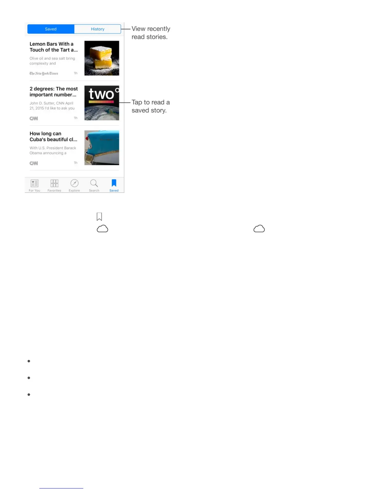 reading a story, tap to save it. To read a saved story, tap Saved, then tap the story.