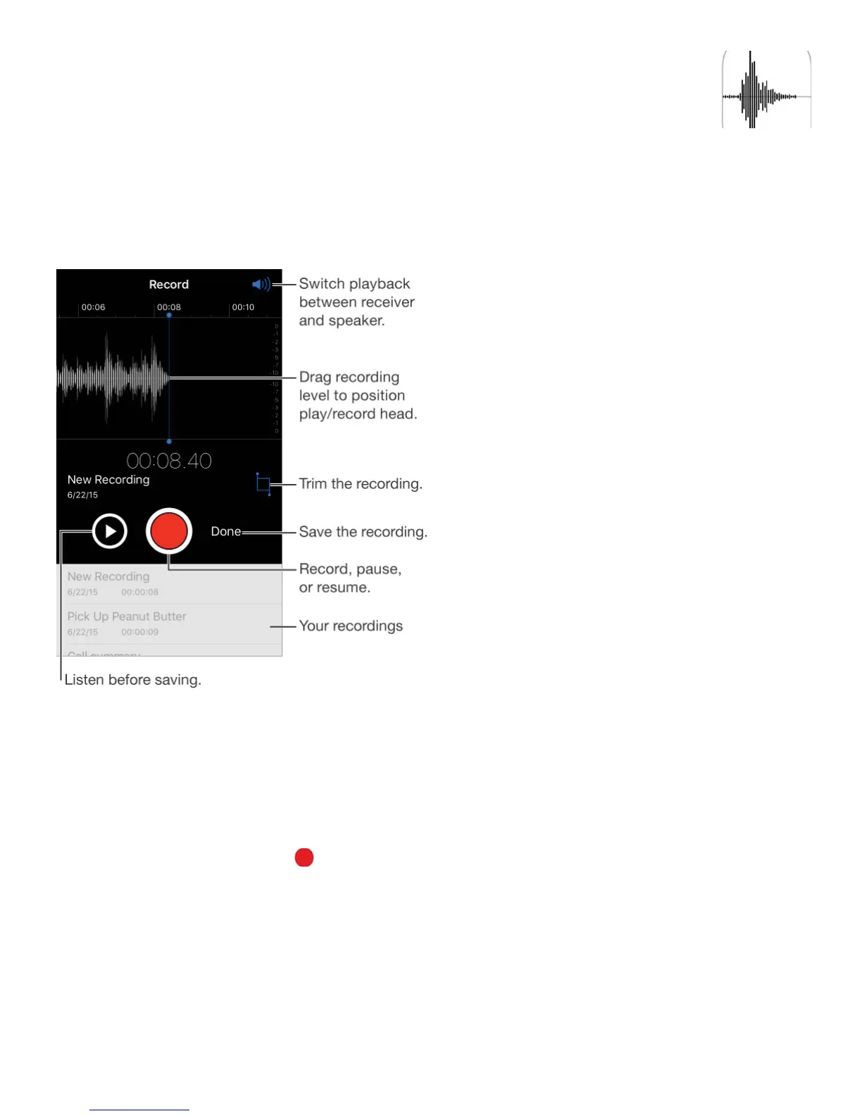 Voice Memos lets you use iPhone as a portable recording device. Use it with the built-in