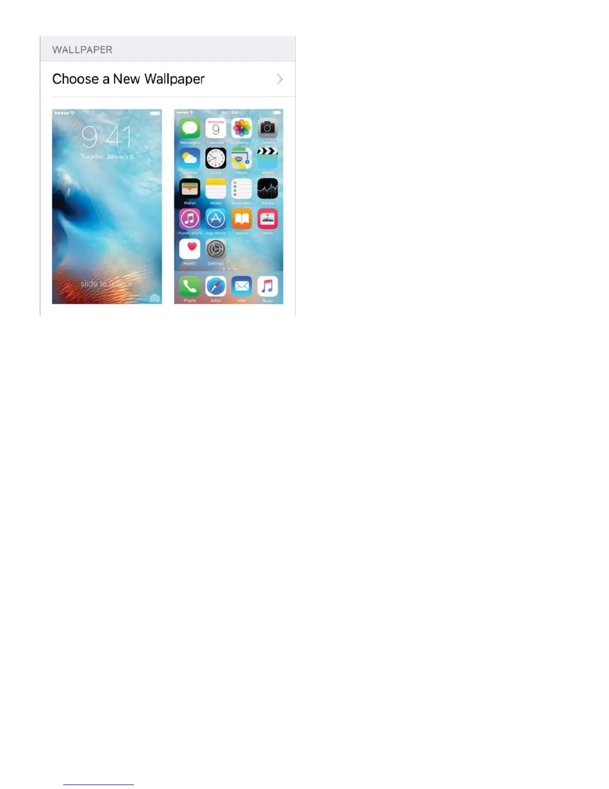 Wallpaper setting, then tap the image of the Lock screen or Home screen to see the