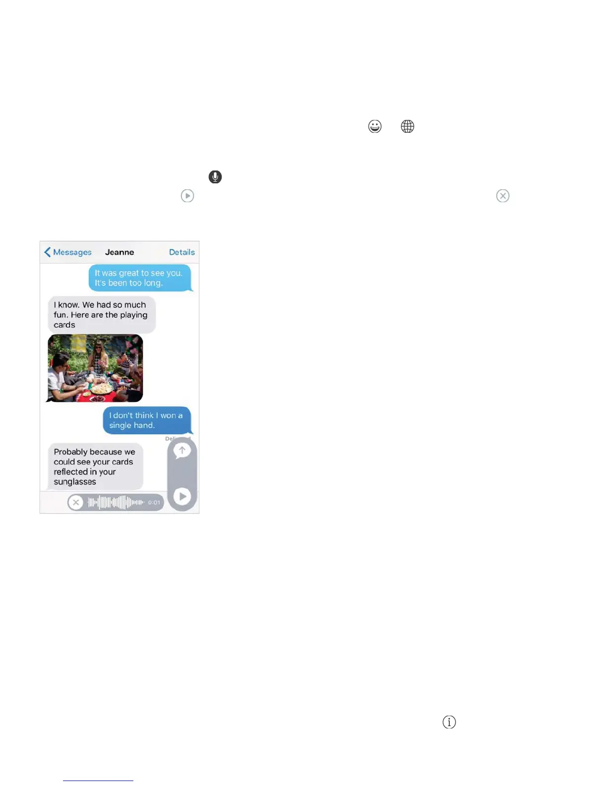 Use picture characters. When you type a message, tap or to change to the Emoji