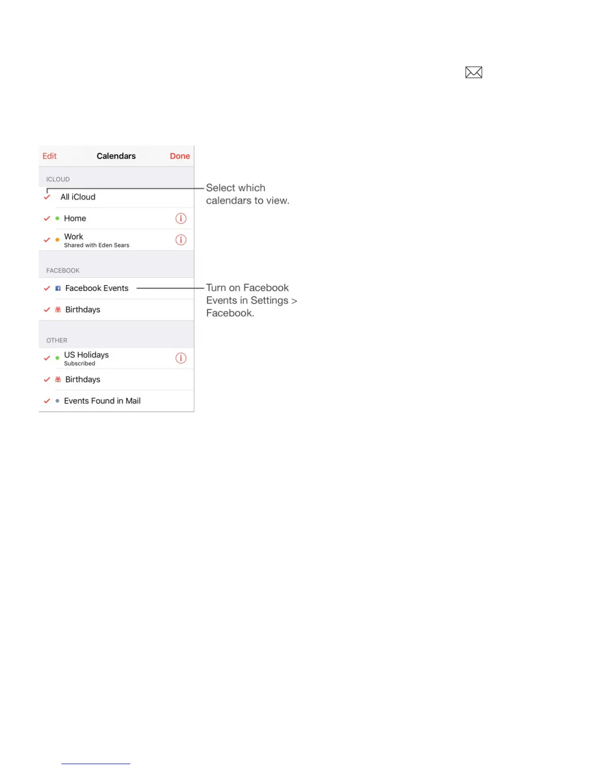 Turn on iCloud, Google, Exchange, or Yahoo! calendars. Go to Settings > Mail,