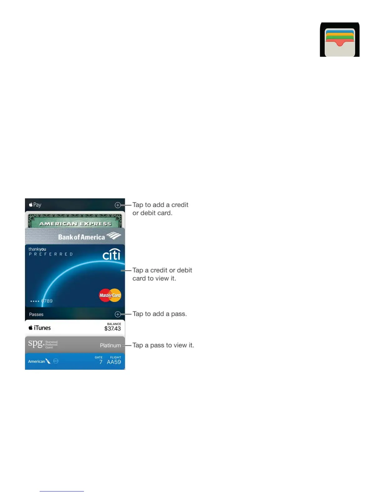Use Wallet to keep your boarding passes, movie tickets, coupons, rewards cards, and more,