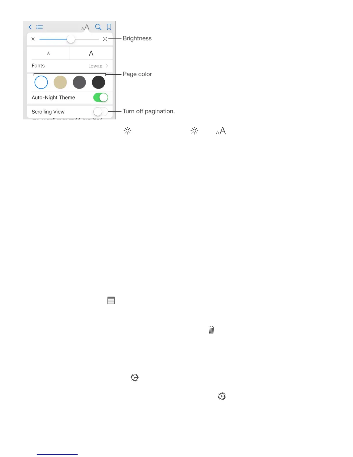 bookshelf, page color, and brightness when using iBooks in low-light conditions. (Not all
