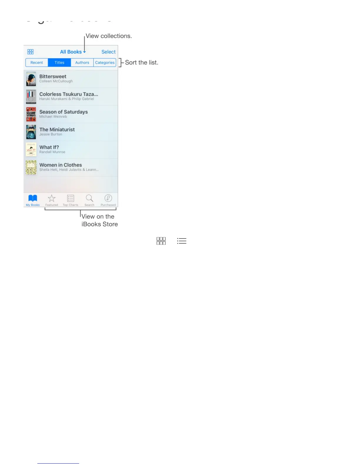 View books by title or by cover. Tap or .
