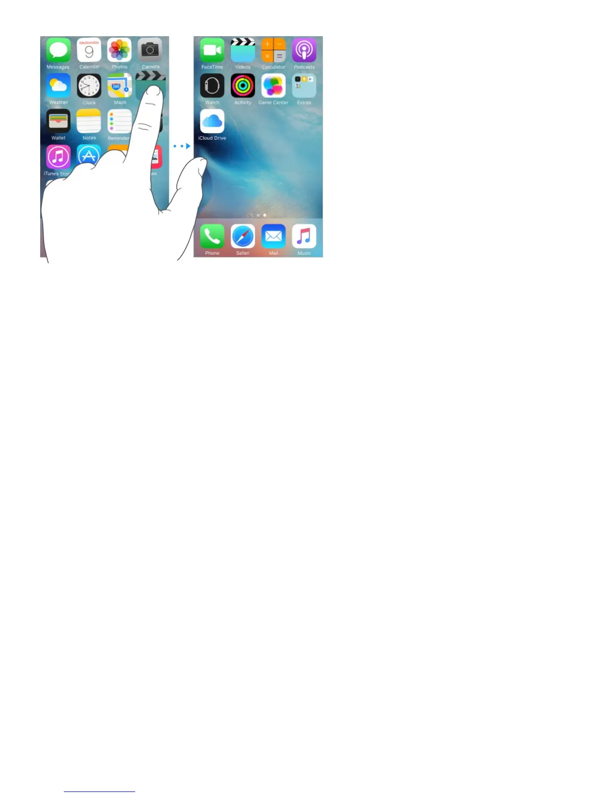 Home screen. The dots above the Dock show how many Home screens you have, and