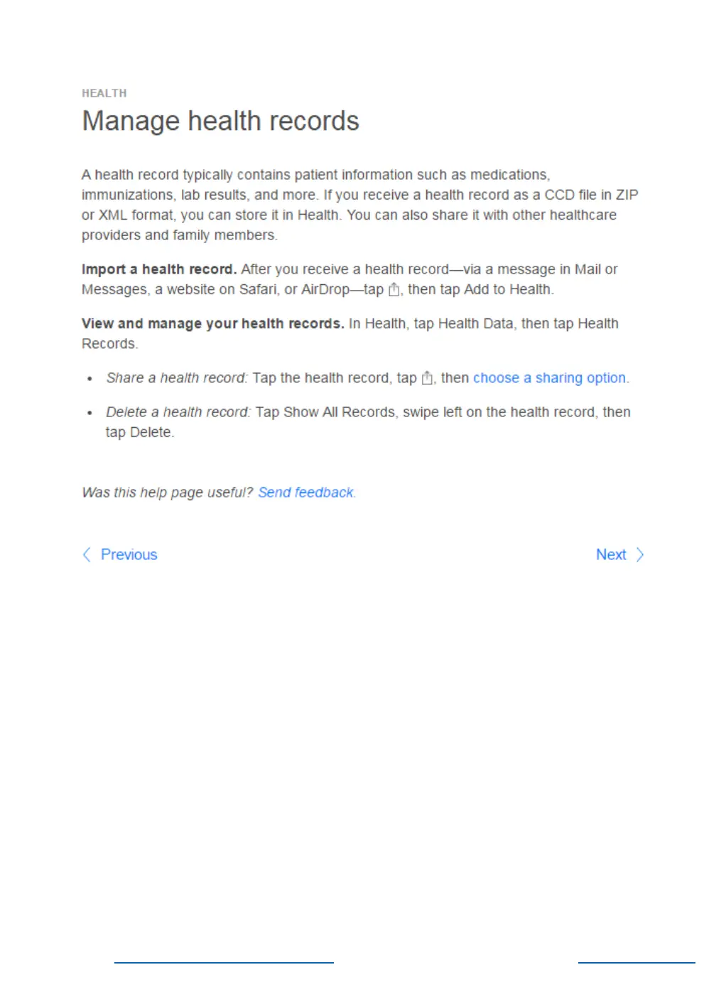 Manage health records