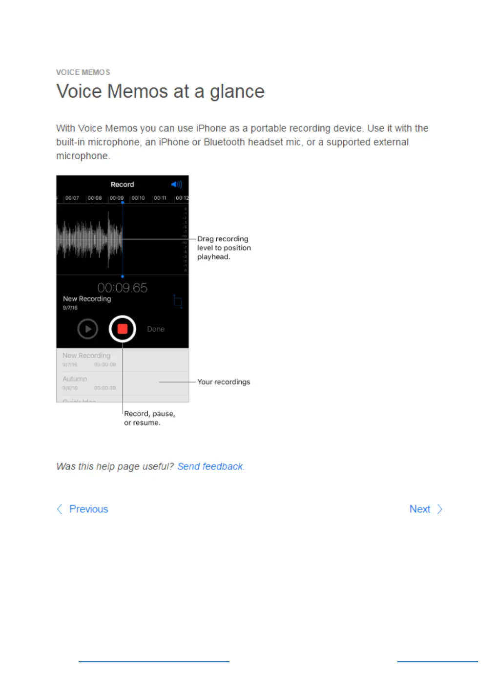 Voice Memos at a glance