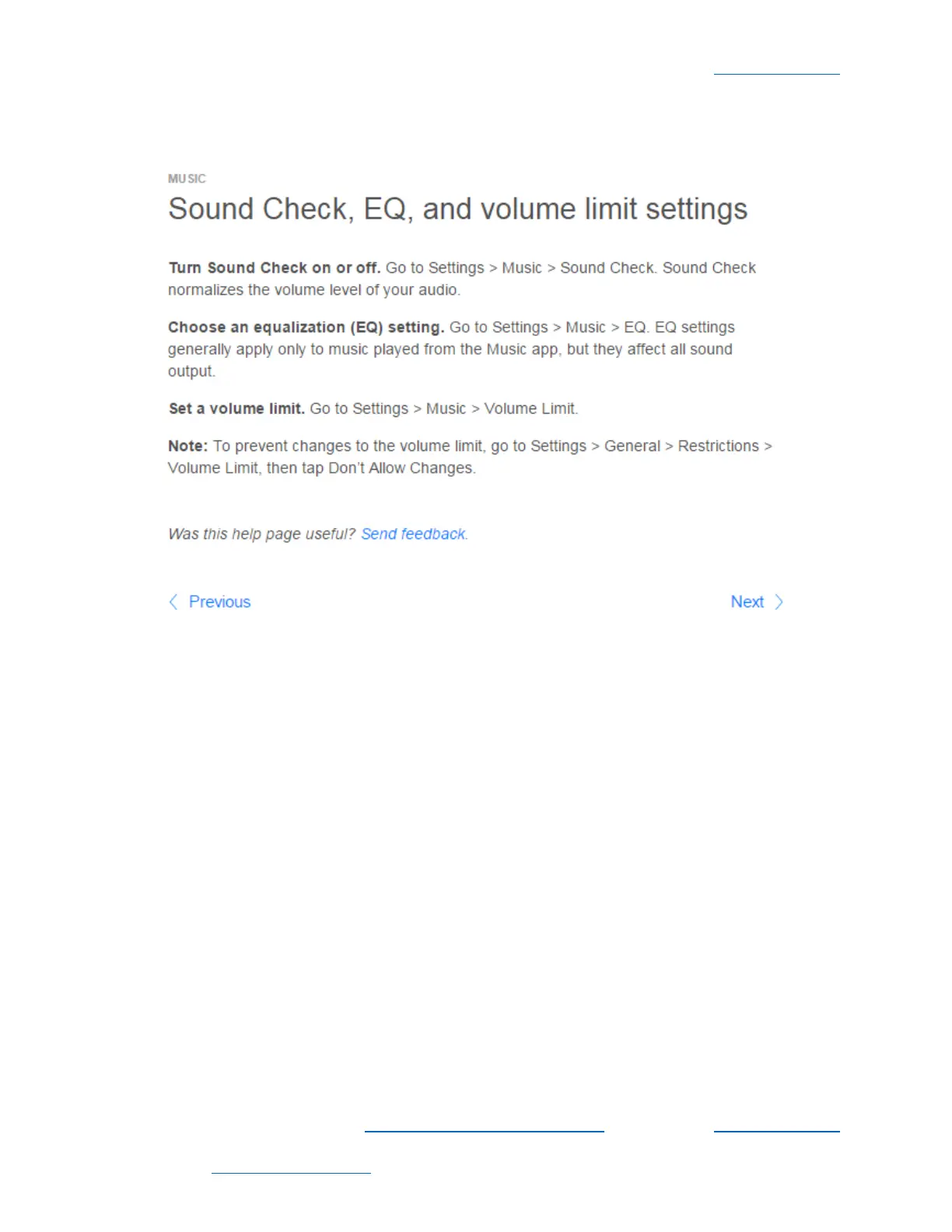 Apple iPhone - Sound Check, EQ, and volume limit settings