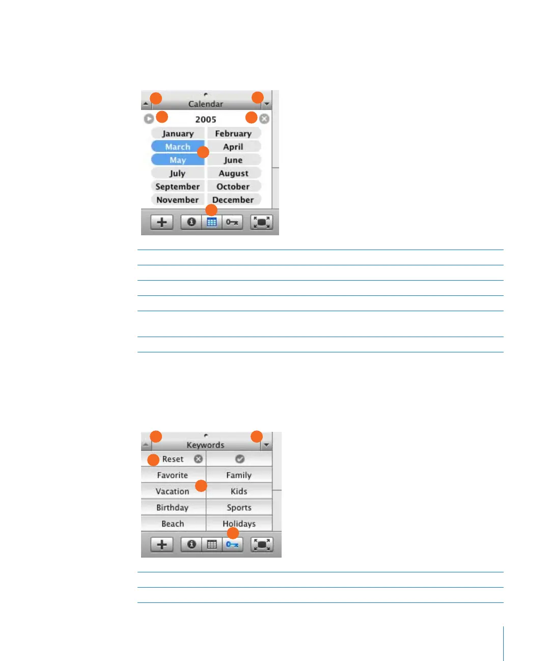 E Months: Click to show only photos from the months you select. Double-click a month to select a