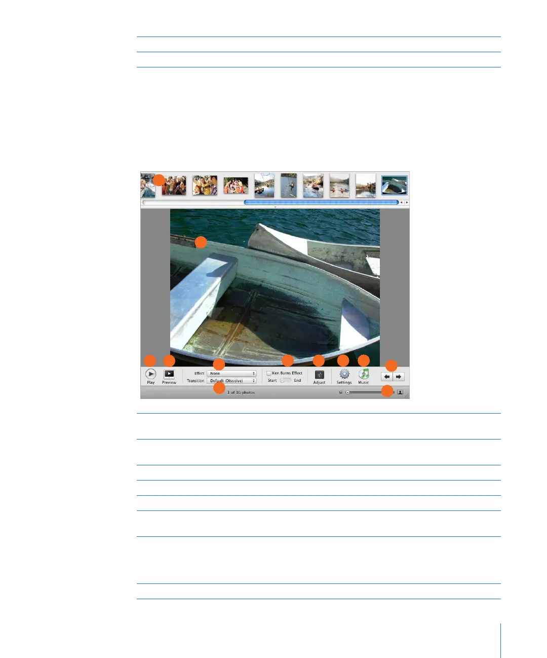 D Preview button: Click to preview the slideshow in the iPhoto window.