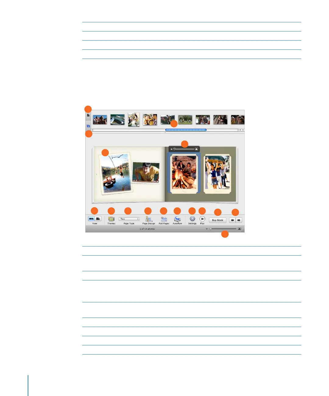 D Viewing area: View the page you selected in the photo browser. To rearrange photos on the