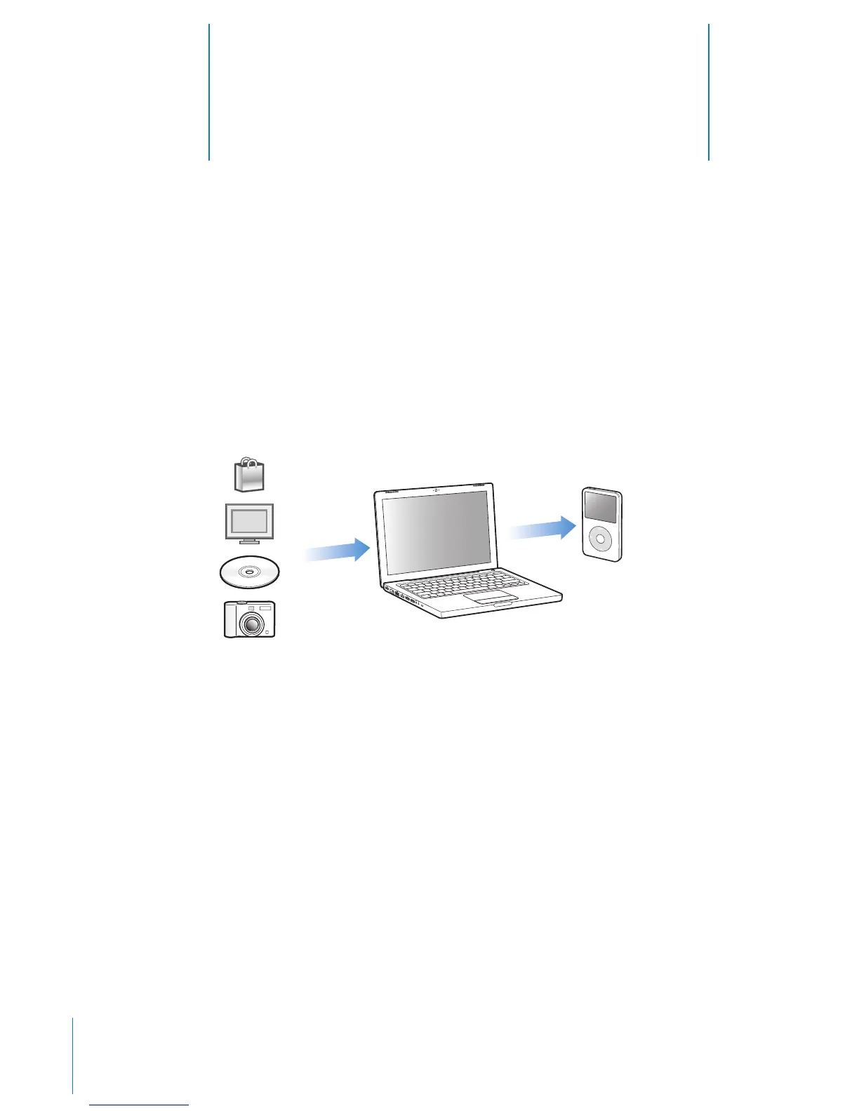 To use iPod, you put music, videos, photos, and other files on your computer and then