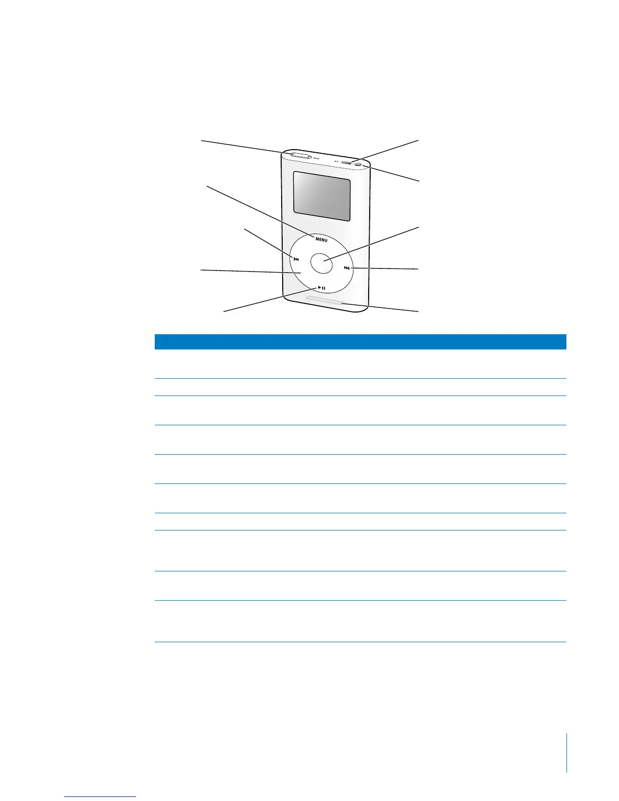 Click Wheel Run a thumb or finger around the Click Wheel to scroll through