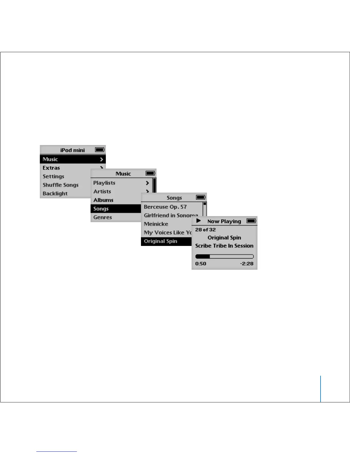 Then use the Click Wheel and Select button (in the center of iPod mini) to browse for a