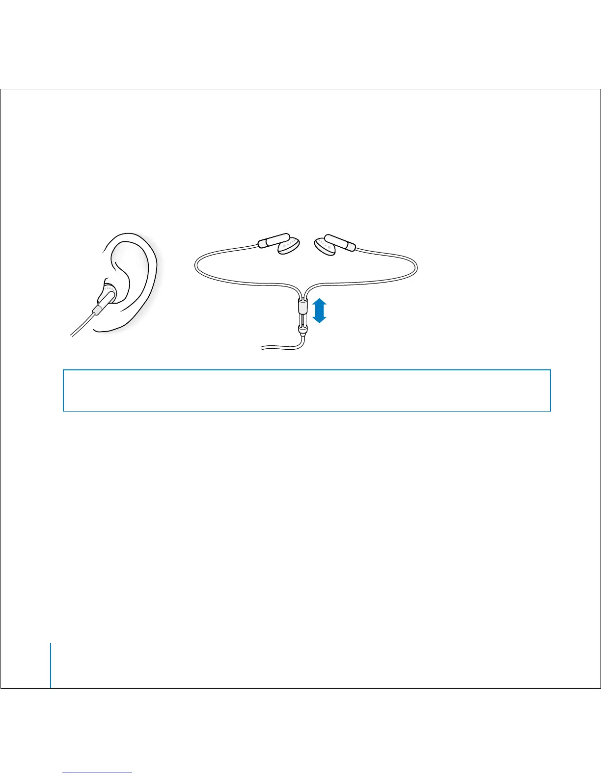 Plug them in to the Headphones port, then place the earbud in your ear as shown.