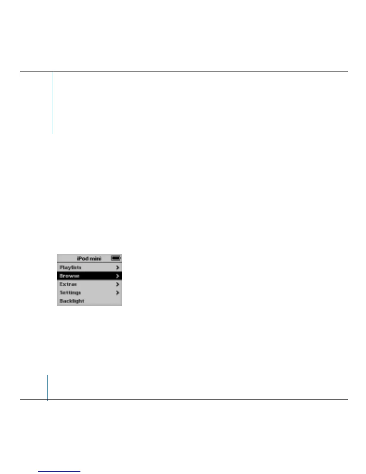 Press the Select button (in the center of iPod mini) to turn on iPod mini. The main