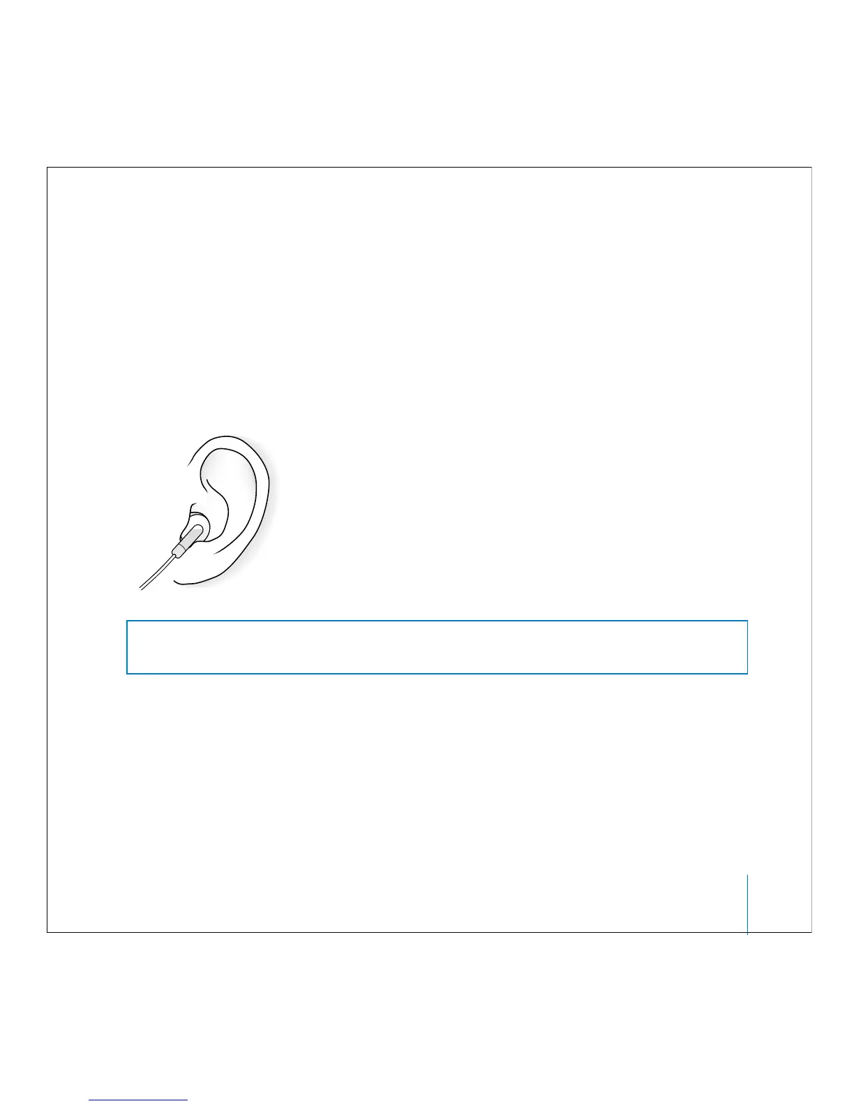Plug them in to the Headphones port, then place the earbud in your ear as shown.