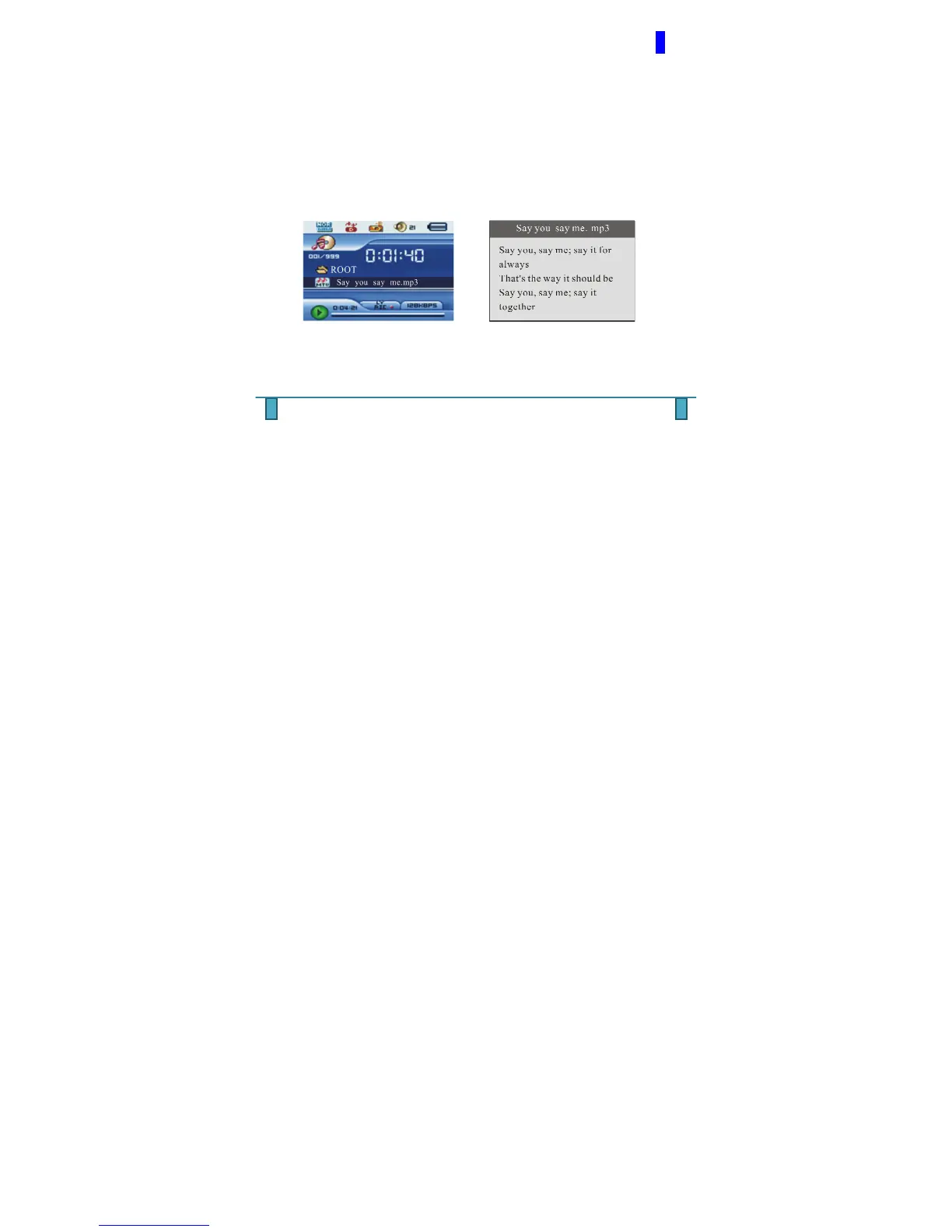 Press and hold MENU button for 1 second to enter lyric interface. If lyrics are present