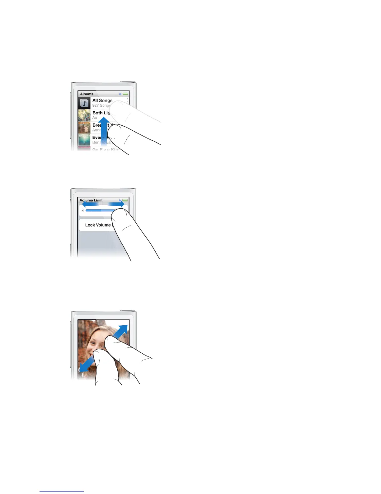 Flick your nger quickly up or down to scroll rapidly. You can wait for scrolling to stop, or