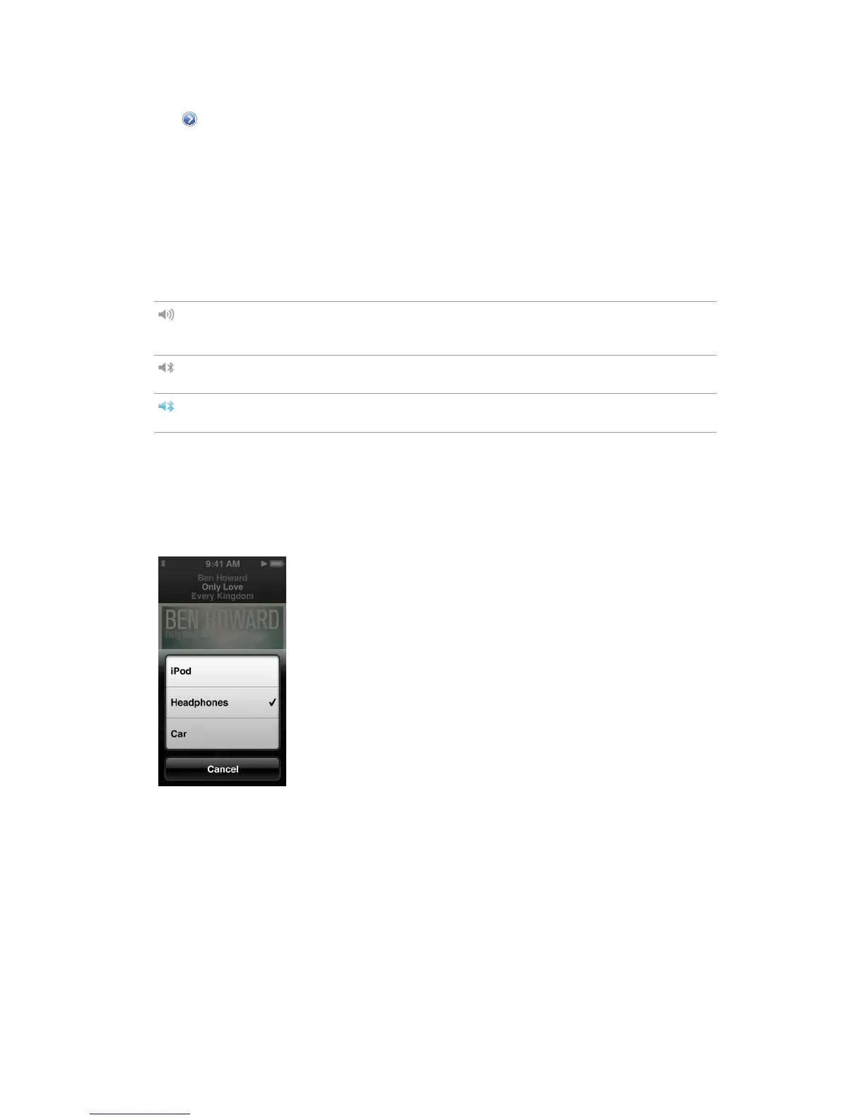 Appears when EarPods or other non-Bluetooth audio devices are selected