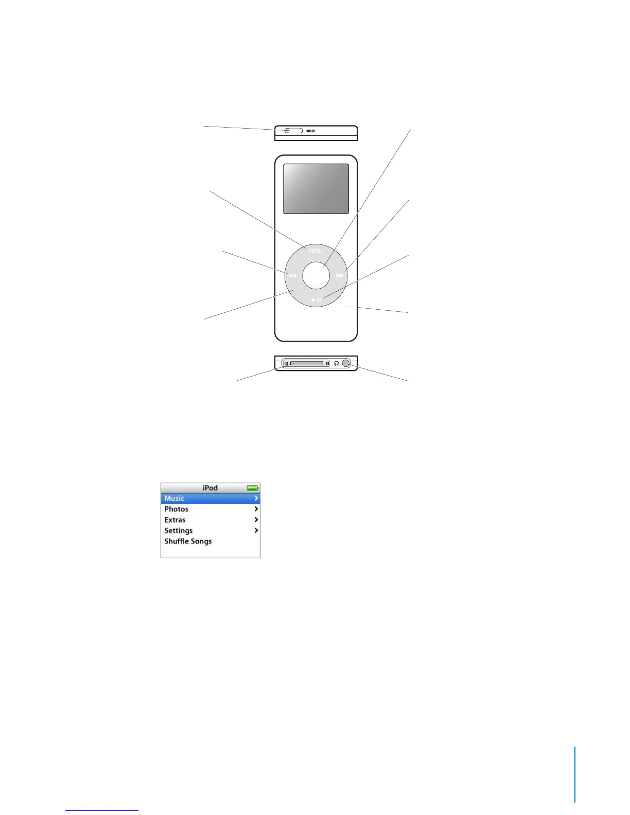 The controls on your iPod nano are easy to find and use. Press any button to turn on
