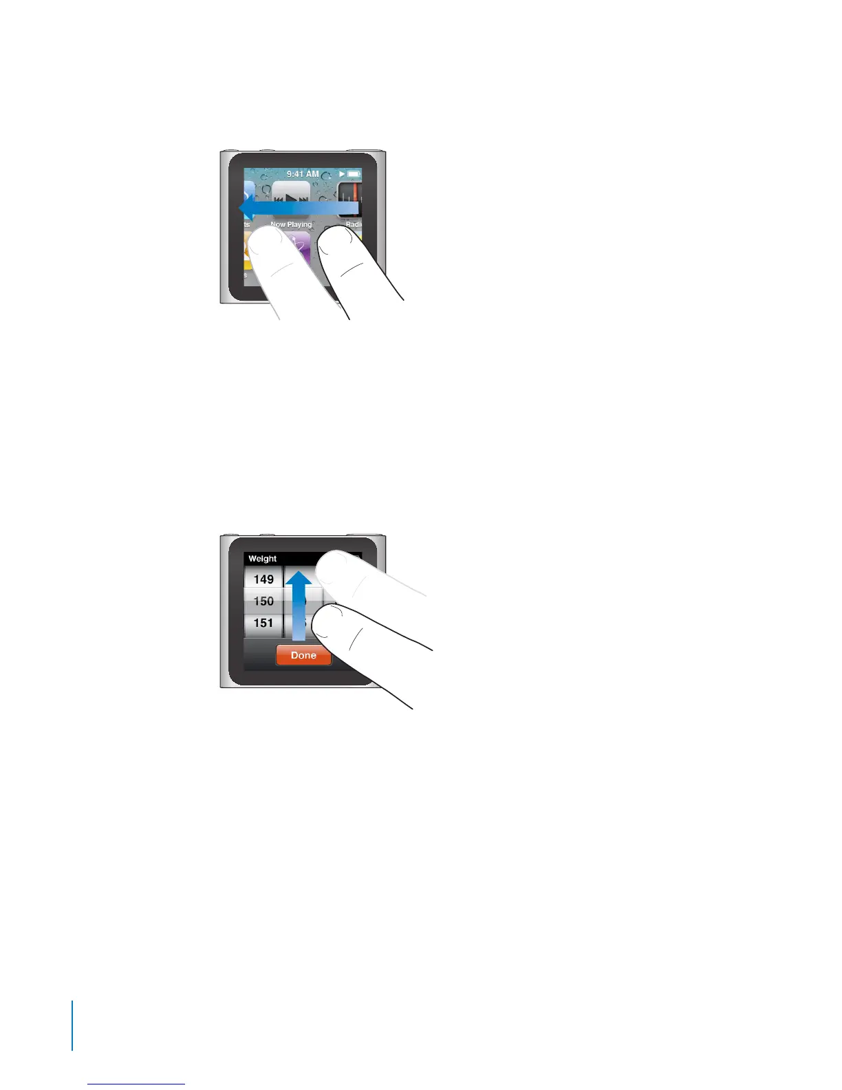 Flick your nger quickly up or down to scroll rapidly. You can wait for scrolling to stop,