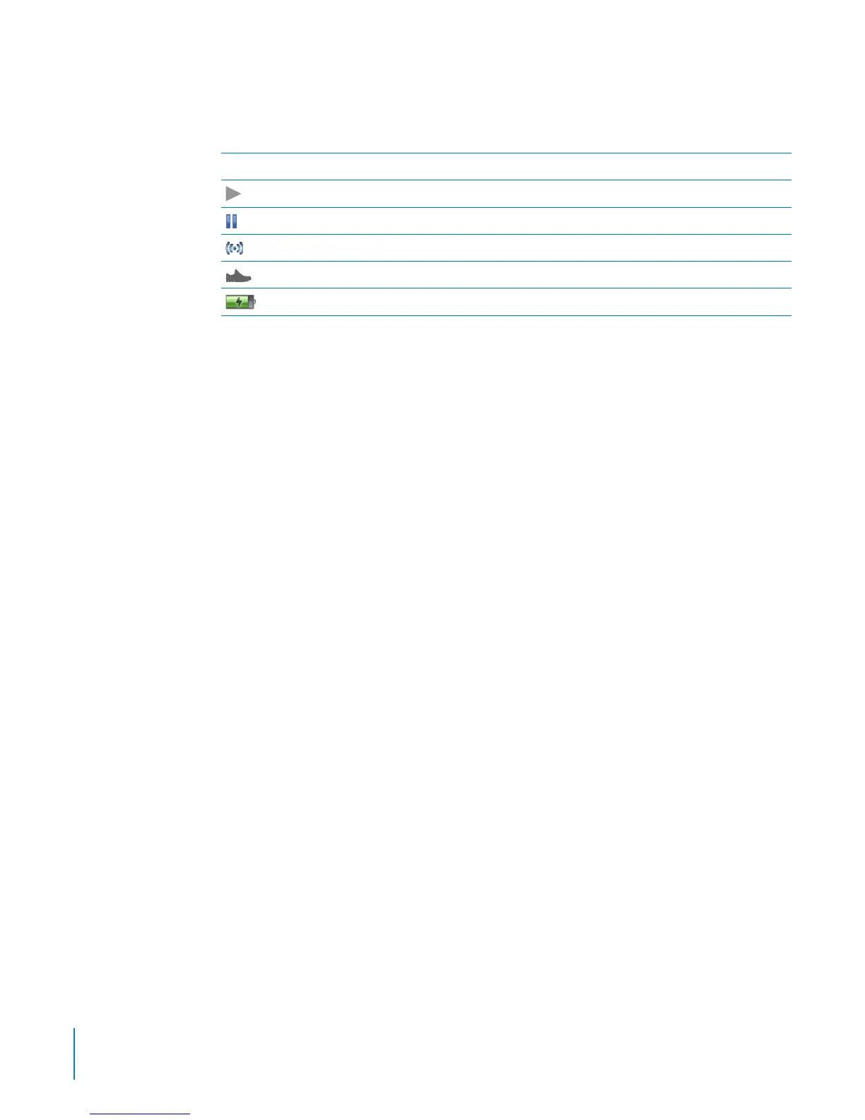 The icons in the status bar at the top of the screen give information about iPod nano: