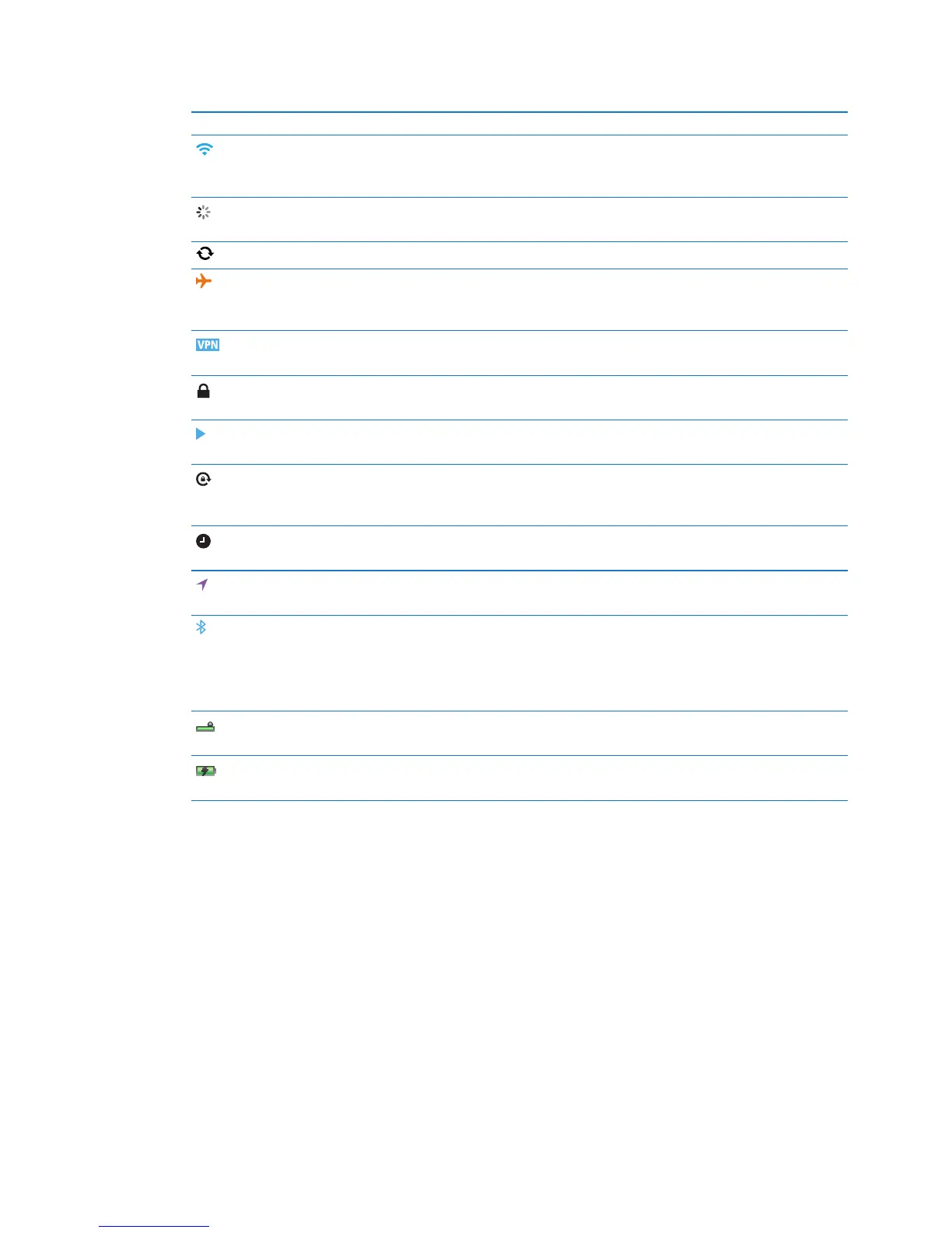 Lock Shows that iPod touch is locked. See “On/O button” on