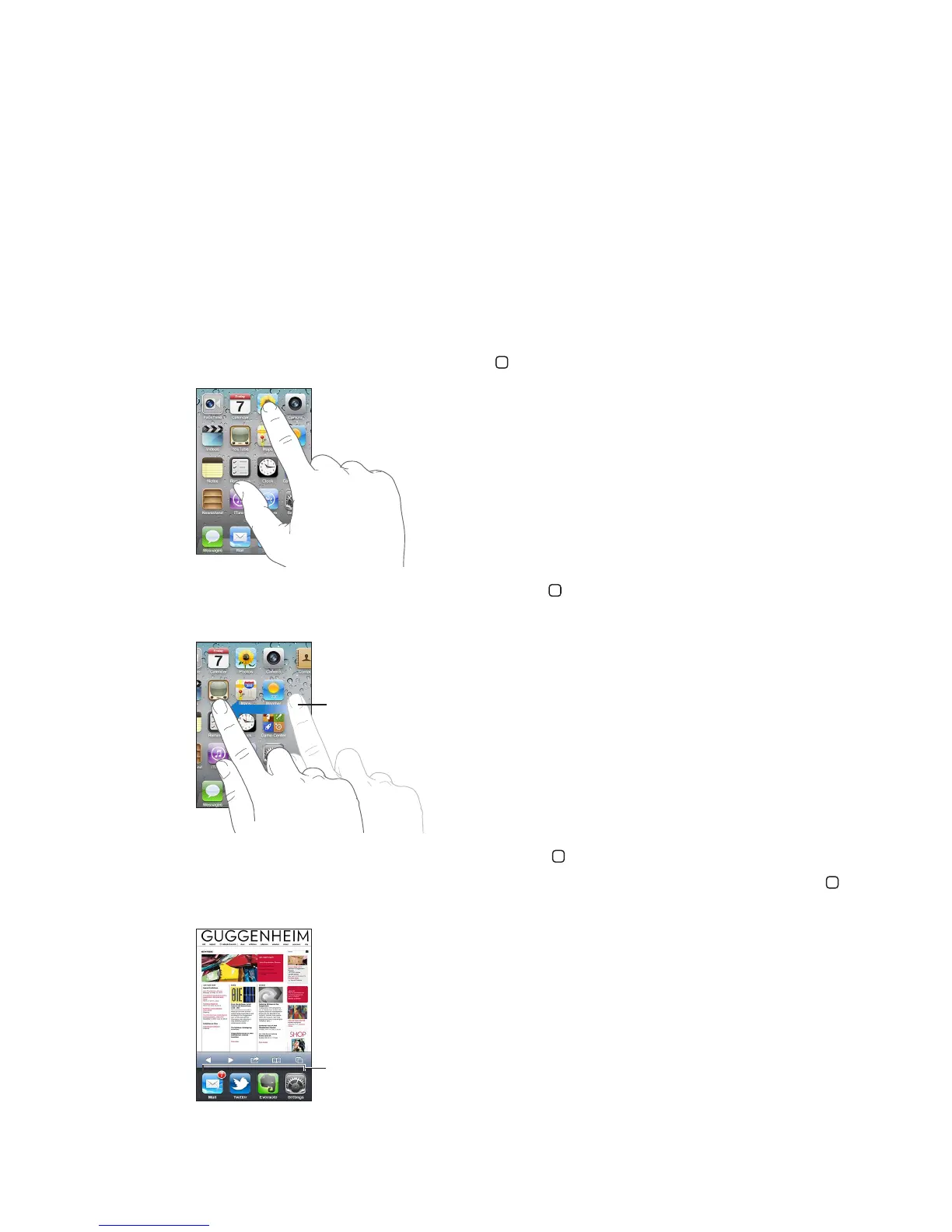 View recently used apps (iPod touch 3rd generation or later): Double-click the Home button