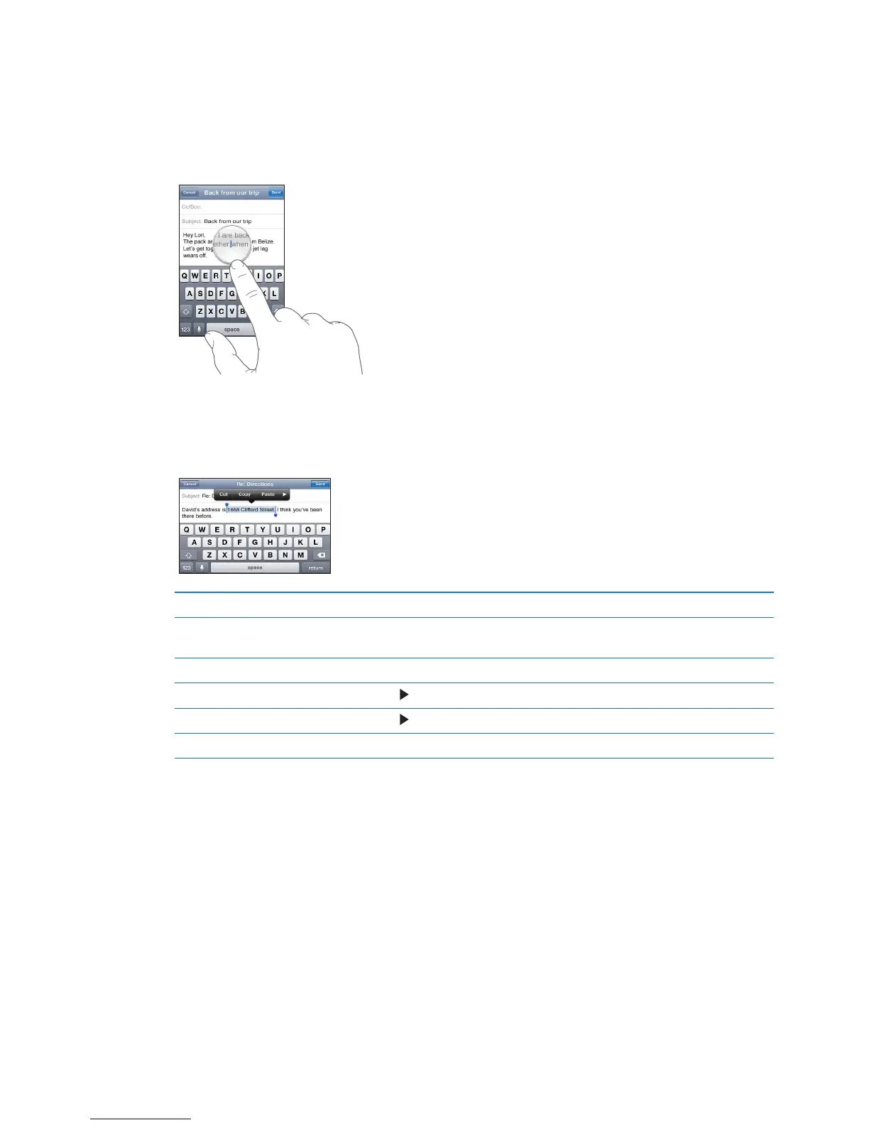 Select text: Tap the insertion point to display the Select and Select All buttons. You can also