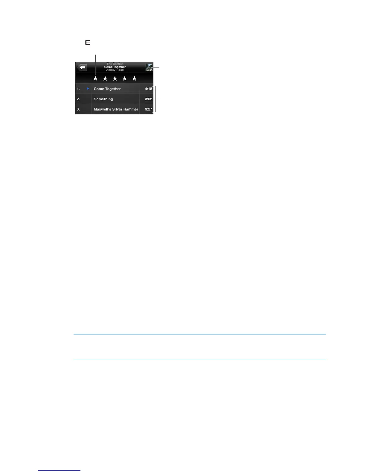 Search music: Enter text in the search eld at the top of a song list, playlist, artist list, or other