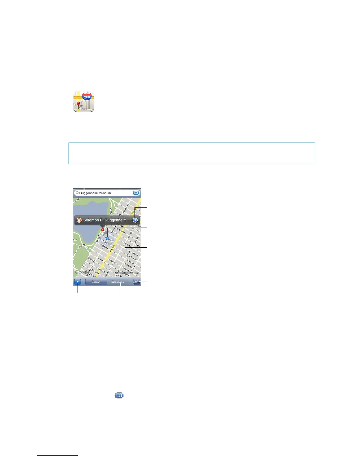 Find a location: Tap the search eld to bring up the keyboard. Type an address or other