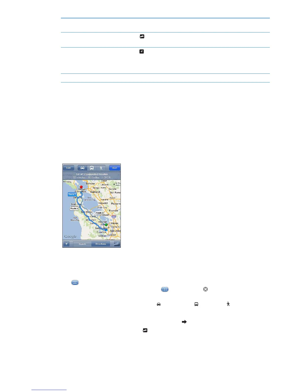 Tap in either eld to choose a location in Bookmarks (including your current location or the