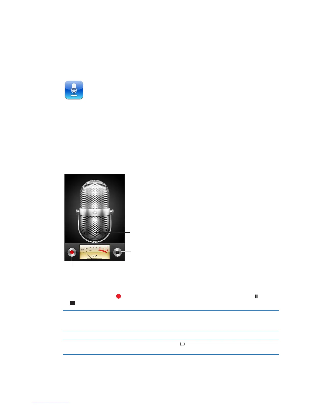 Use another app while recording Press the Home button and open an app. To return to Voice Memos,