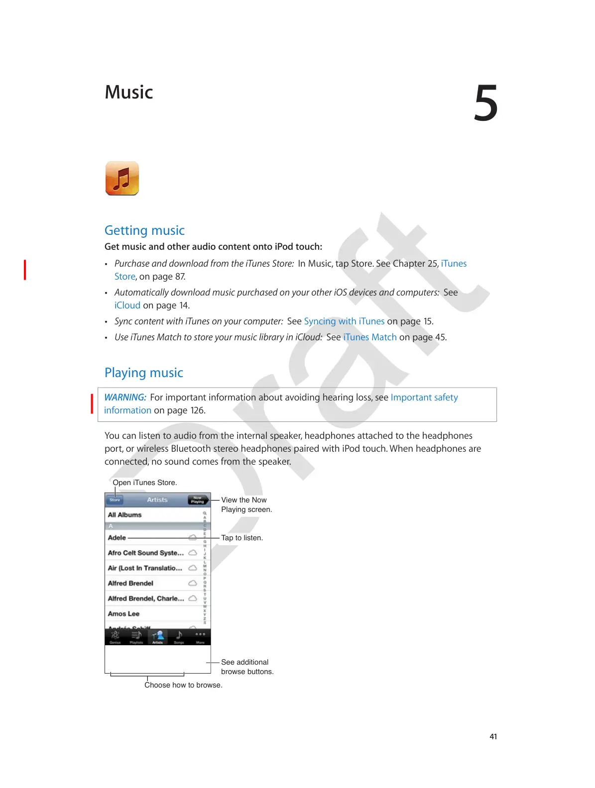 Get music and other audio content onto iPod touch: