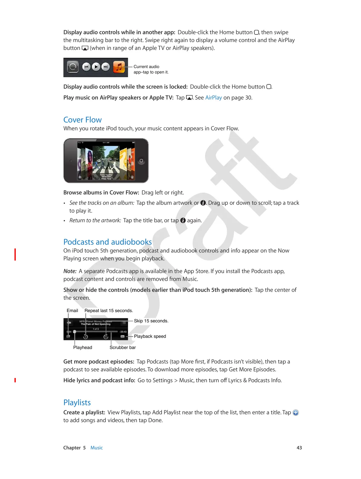 Show or hide the controls (models earlier than iPod touch 5th generation): B,;$*2-$1-7*-#$")$