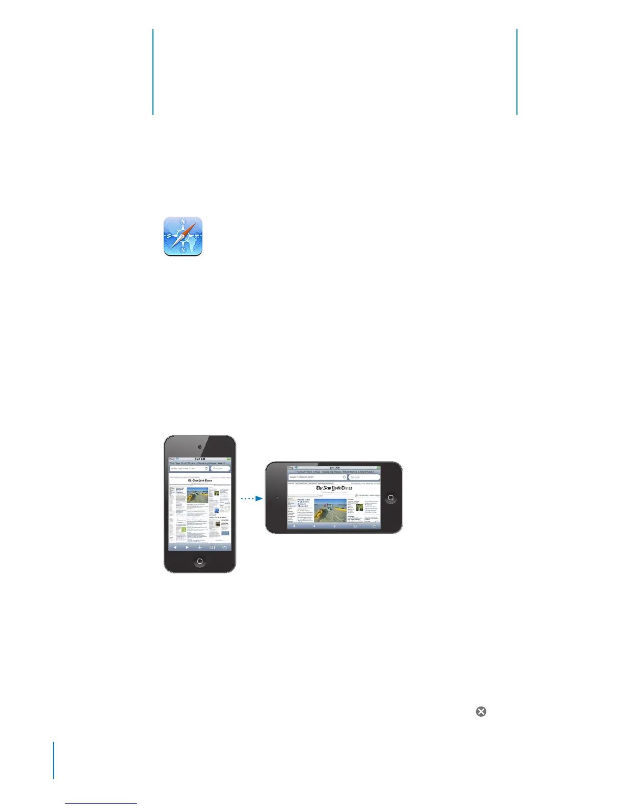 To use Safari, iPod touch must join a Wi-Fi network that’s connected to the Internet.