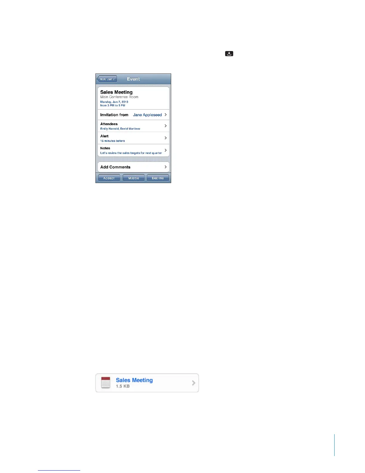 1 Tap a meeting invitation in the calendar, or tap to display the Event screen and tap