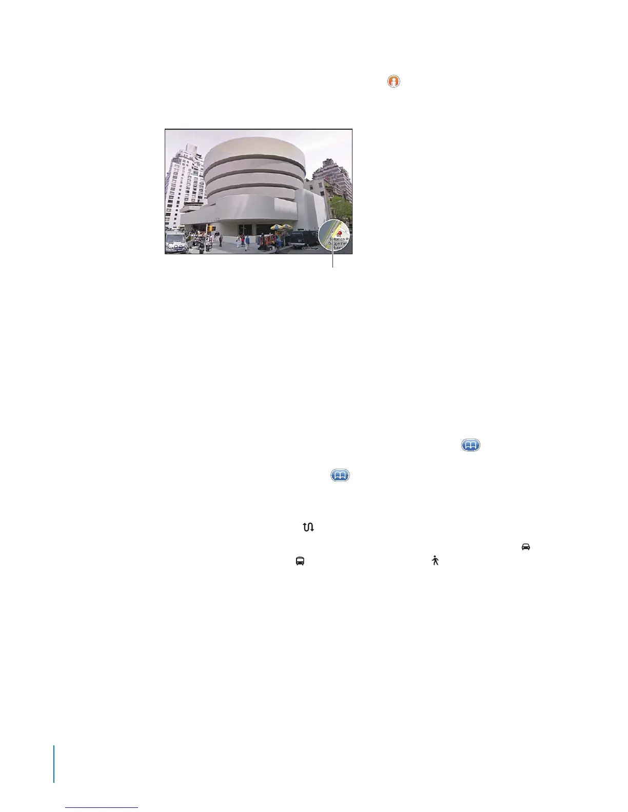 down the street. To return to map view, tap the map inset in the lower-right corner.