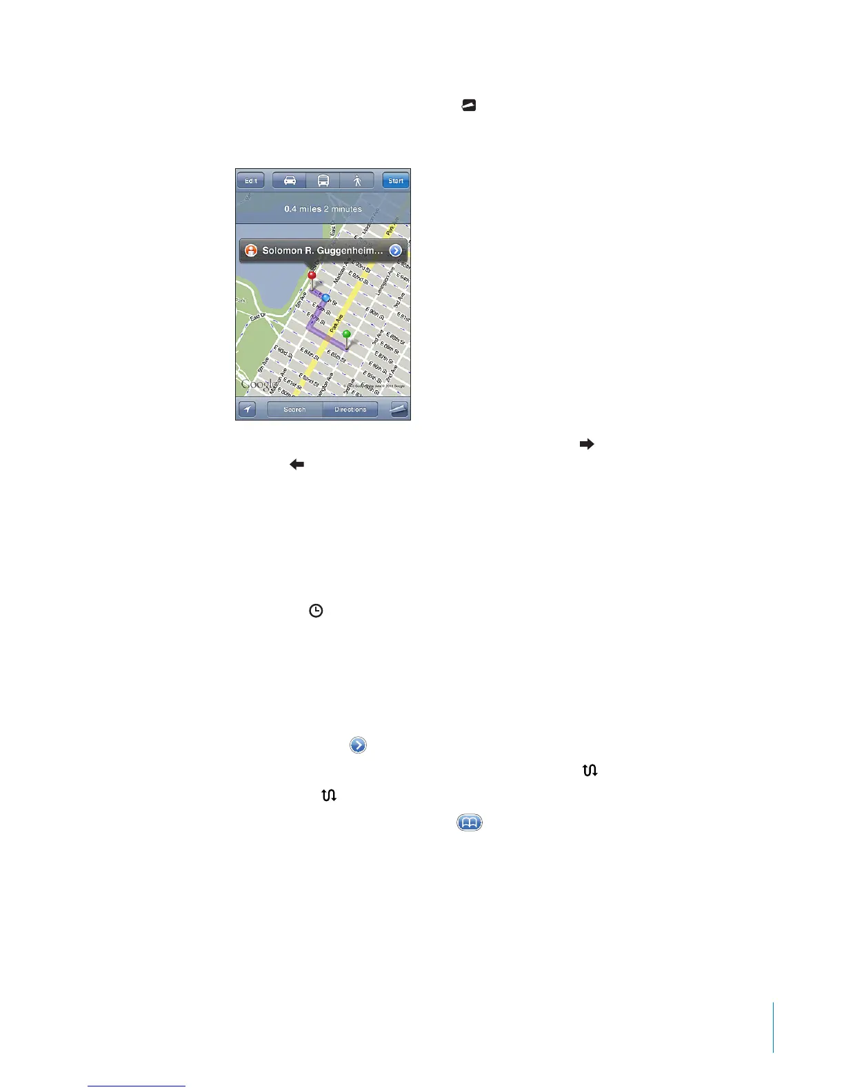 To view directions one step at a time, tap Start, then tap to see the next leg of the