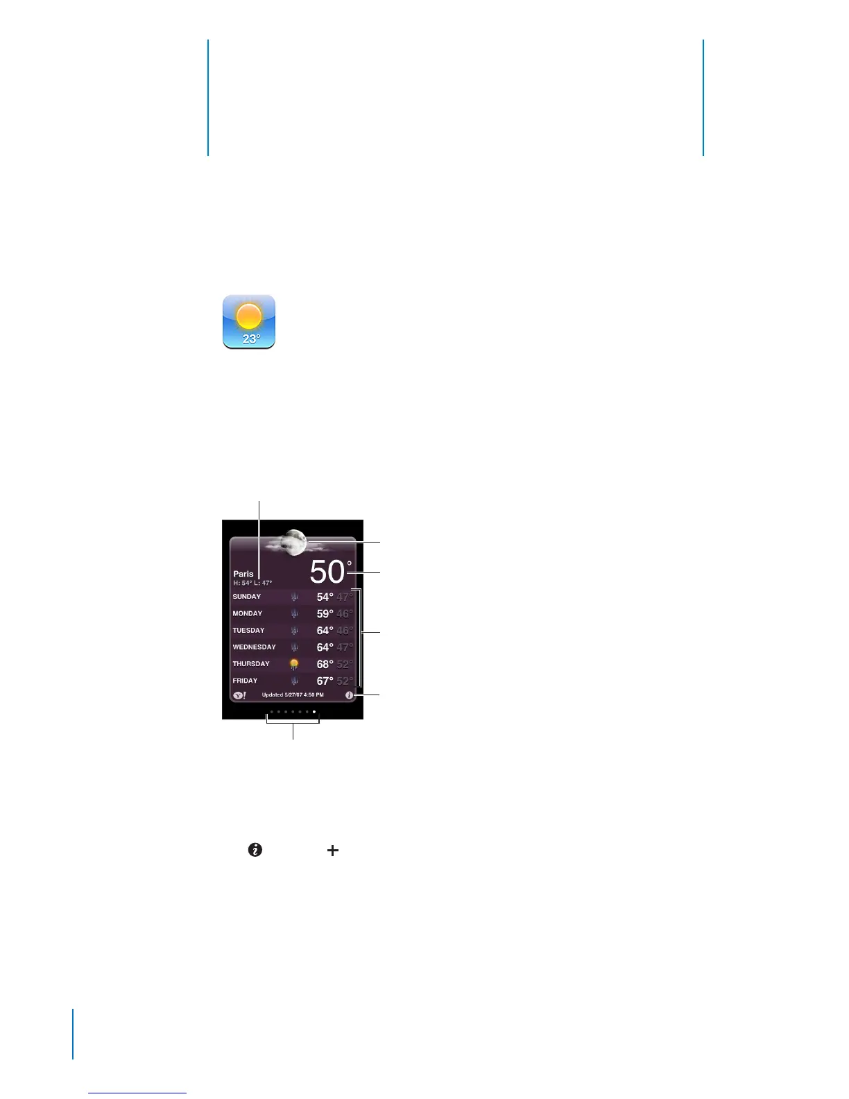 for one or more cities around the world. To use Weather, iPod touch must join a Wi-Fi
