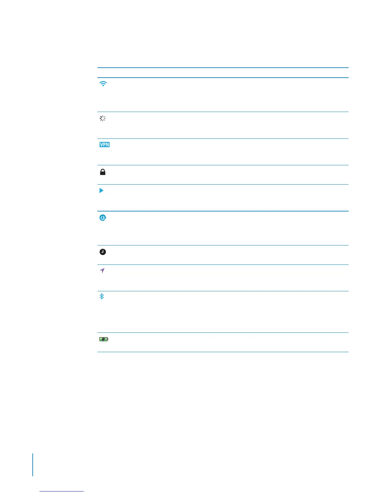 The icons in the status bar at the top of the screen give information about iPod touch: