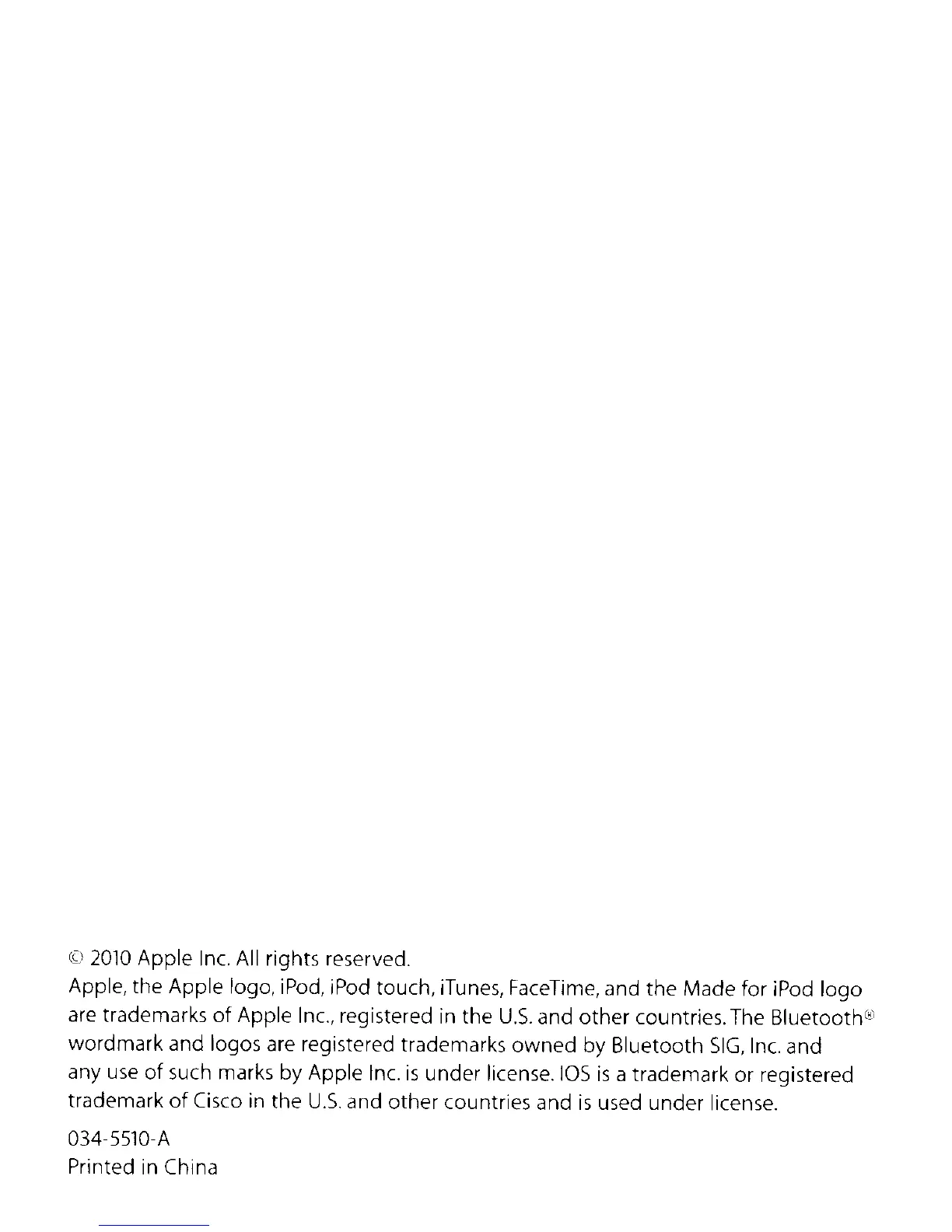 Apple, the Apple logo, iPod, iPod touch, iTunes, FaceTime, and