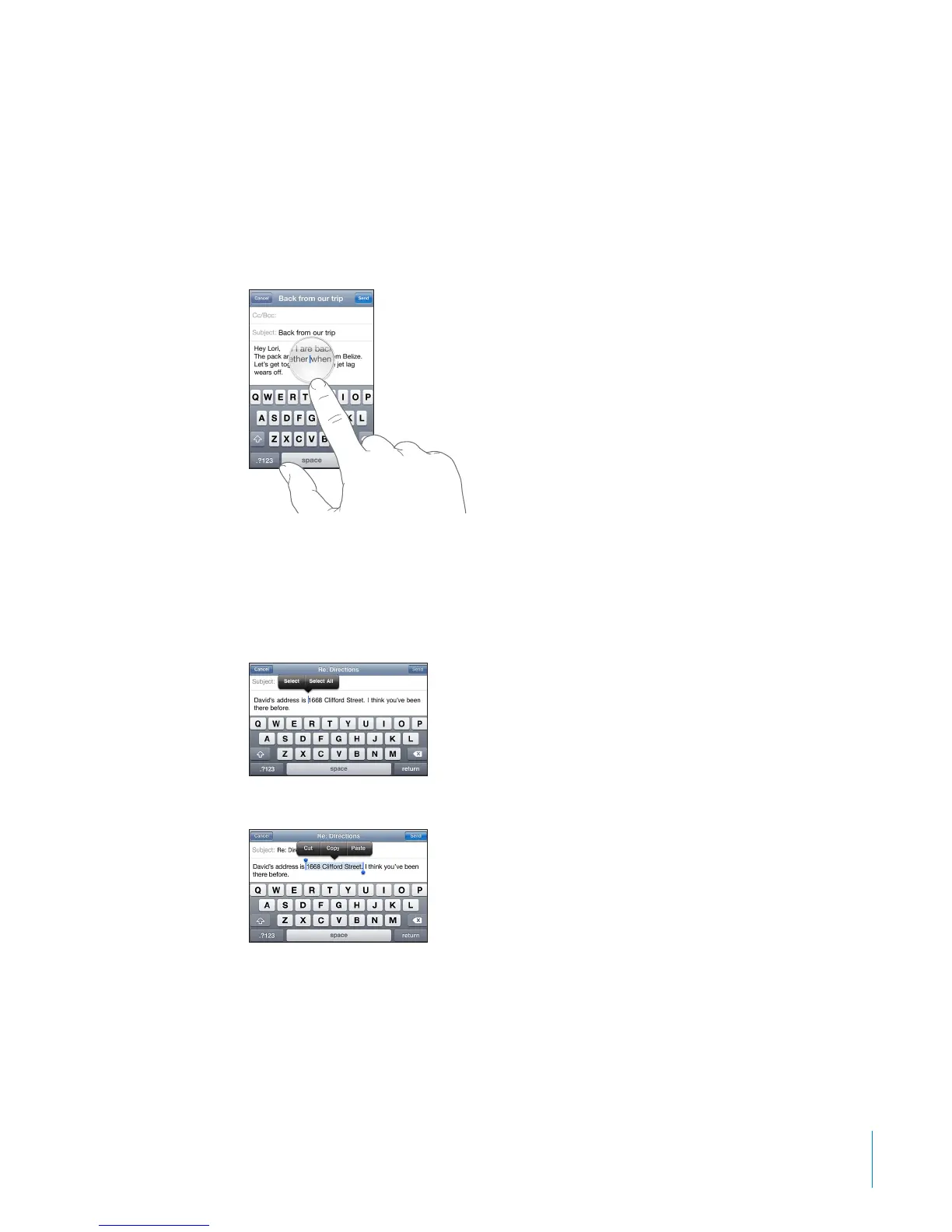 Select text: Tap the insertion point to display the selection buttons. Tap Select to