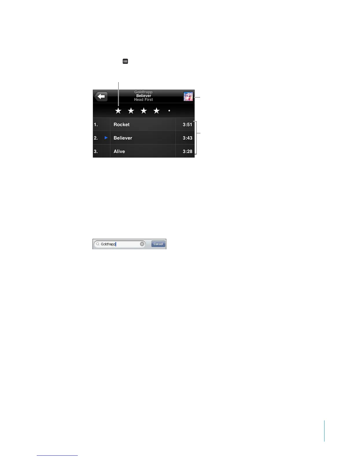 or other view of your iPod content. (Tap the status bar to scroll quickly to the top of a
