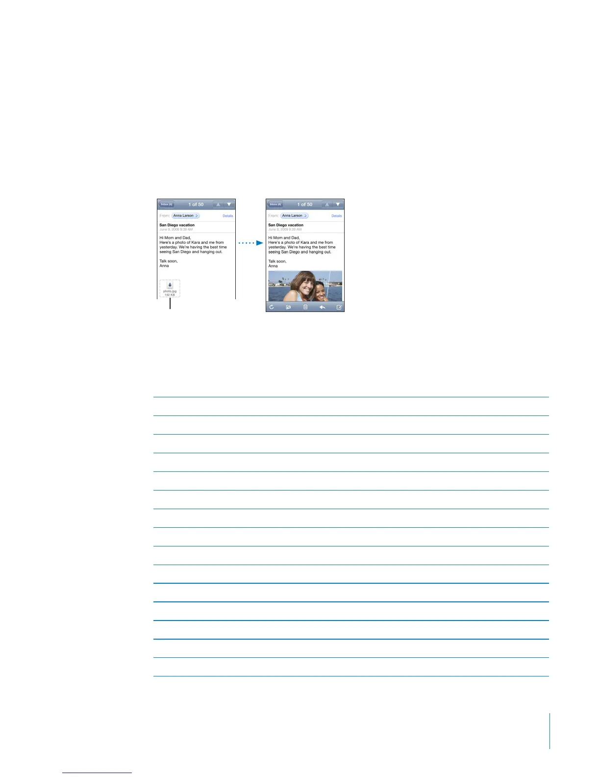 Open an attached le: Tap the attachment. It downloads to iPod touch and then