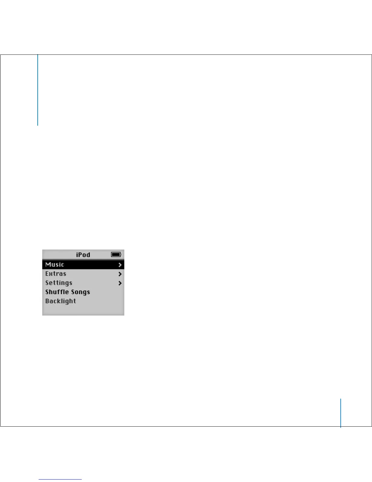 Press any button to turn on iPod. The main menu appears.