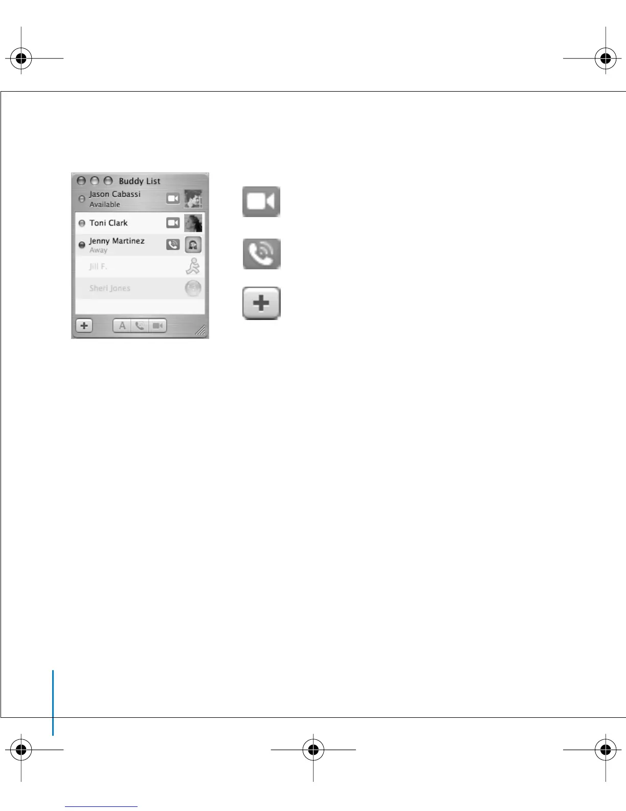 For information on adding people to your Buddy List, choose Help > iChat Help.